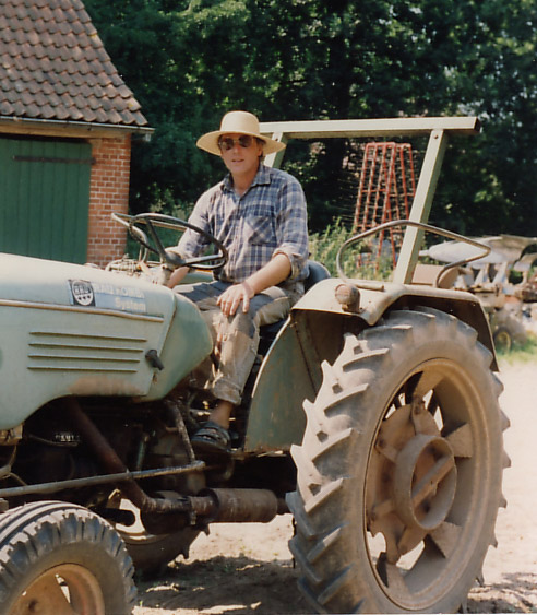 Heino Cordes im Sommer mit Hackschlepper Kramer Bj 61